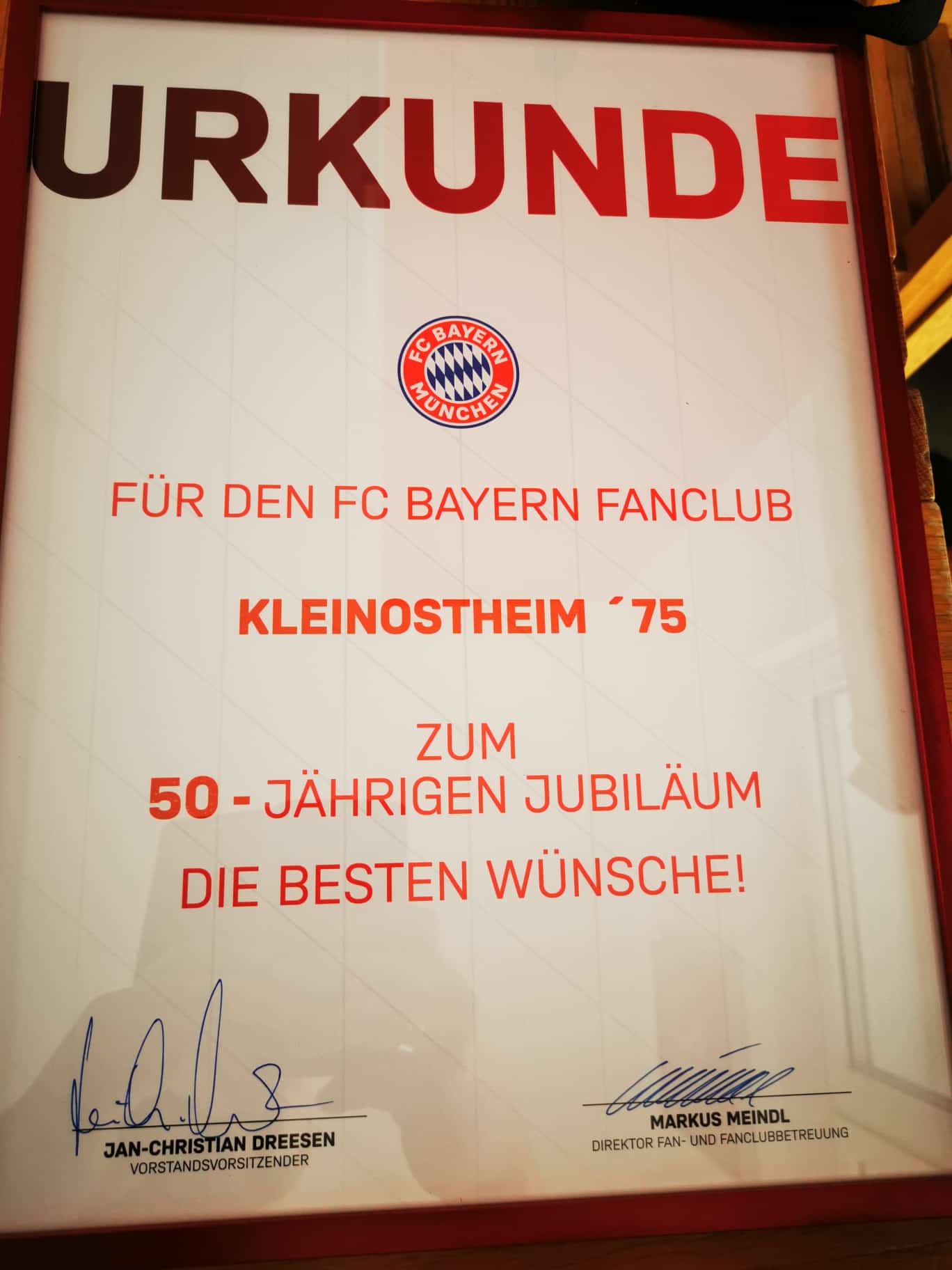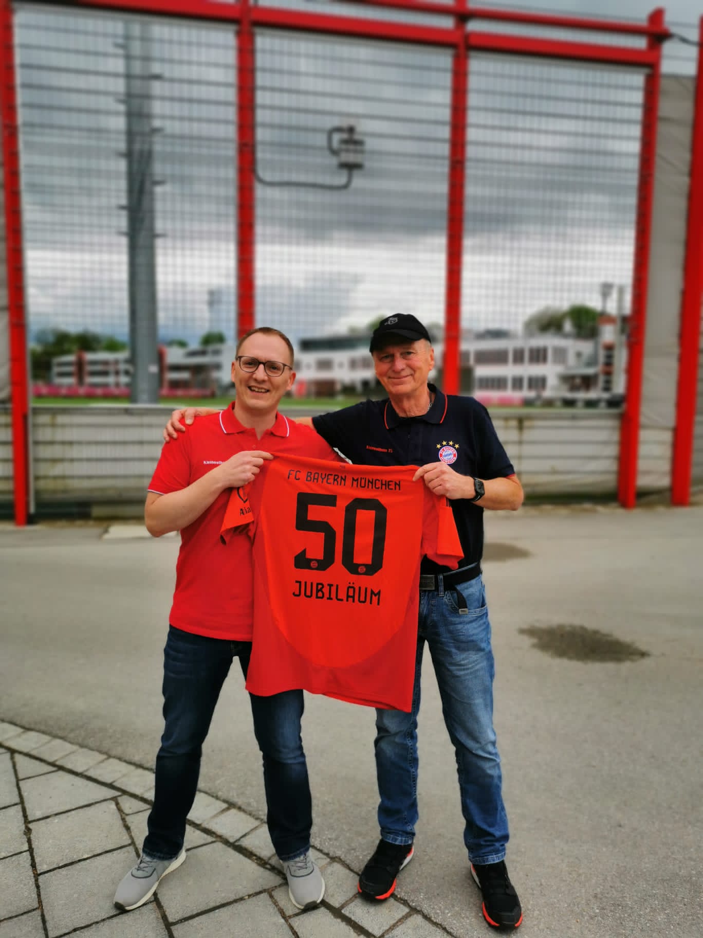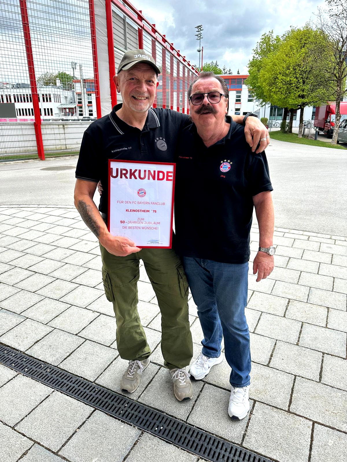 Auf „kleiner Dienstreise“ an die Säbener 51 mit Empfang durch Herrn Markus Meindl, Direktor Fan- und Fanclub-Betreuung, aus Anlaß unseres 50-jährigen Club-Jubiläums…