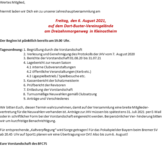 Freitag, 6. August: BFC-Jahreshauptversammlung auf dem DB-Clubgelände